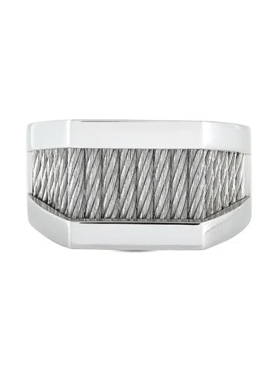 silver-tone stainless steel cable design polished finish rectangular shape