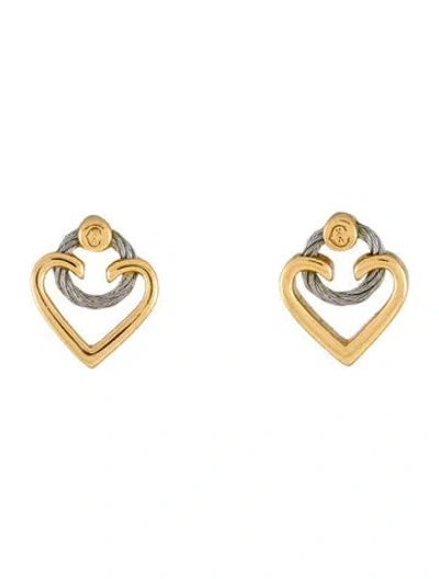 14K Yellow Gold-Plated, Silver & Stainless Steel | Charriol Cable Heart Stud Earrings