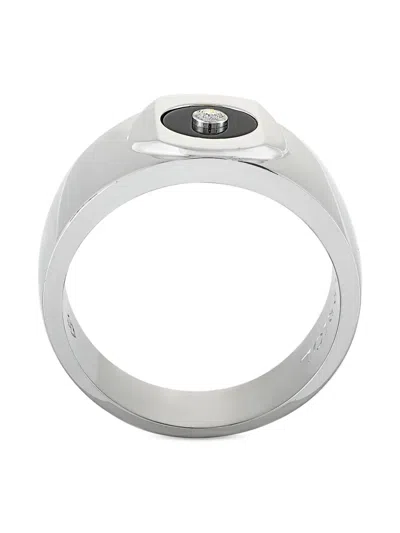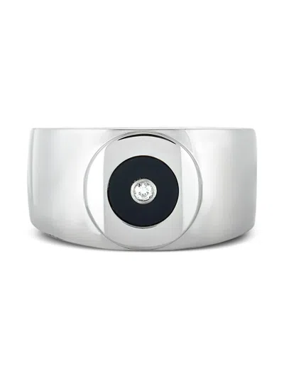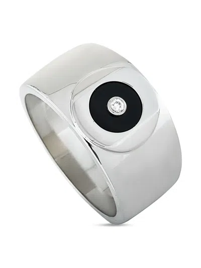 silver-tone sterling silver polished finish mother-of-pearl bezel-set round-cut diamond flat court band Normal everyday use and external agents may reduce the lustre of gemstones and gold surfaces. To maintain, use specific, non-abrasive products specially meant for cleaning jewellery. Condition: EXCELLENT. This previously owned item is in near-perfect condition with no signs of damage or use.