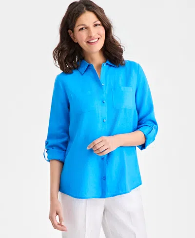 Charter Club's versatile shirt works wonders in your wardrobe with clever roll-tab sleeves in lightweight linen.