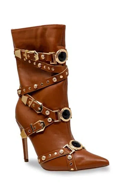 Chase And Chloe Adonis Stud Embellished Boot In Brown