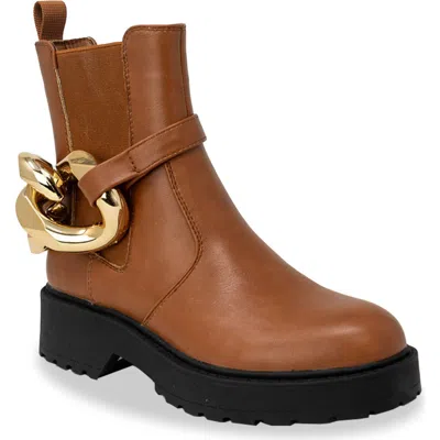 Chase And Chloe Chunky Chain Strap Lug Boot In Brown