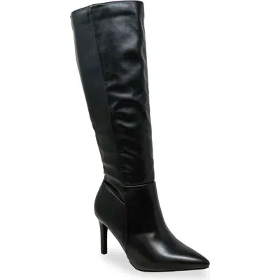 A pointy toe and slim stiletto heel balance a sleek knee-high boot fashioned with a side zipper for easy entry. 3 1/4" heel Inset side-zip closure Synthetic upper, lining and sole Imported