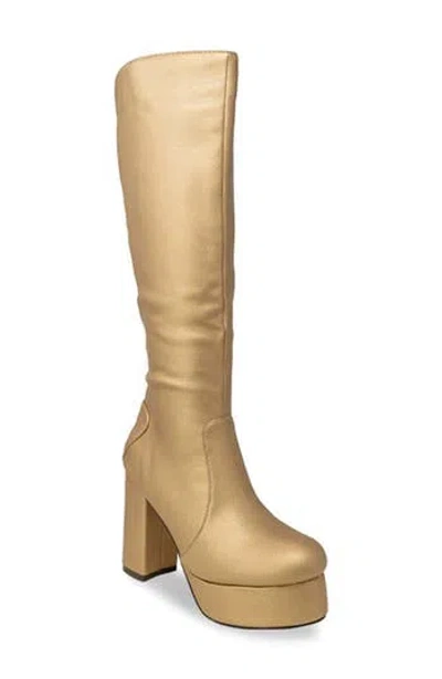 CHASE & CHLOE Chase And Chloe Knee High Platform Boot In Gold