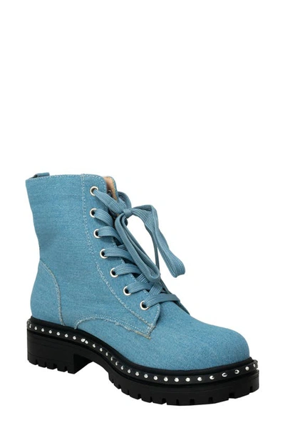 CHASE & CHLOE Mira Studded Lug Combat Boot In Denim