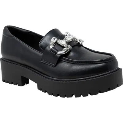 Chase And Chloe Rhinestone Bit Platform Loafer In Black
