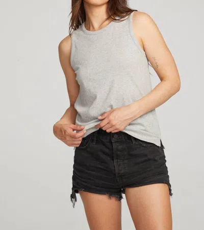 This classic tank top is perfect for layering and cute enough to wear on its own.Discover the Basic Slit Tank by Chaser, a must-have staple for your wardrobe in a versatile Heather Grey. This sleeveless tank, crafted from 100% cotton, offers comfort and breathability for everyday wear. Its solid pattern and pull-on closure make it perfect for layering with your favorite denim and a leather jacket. Ideal for women seeking effortless style, this tank elevates ordinary outfits with ease.