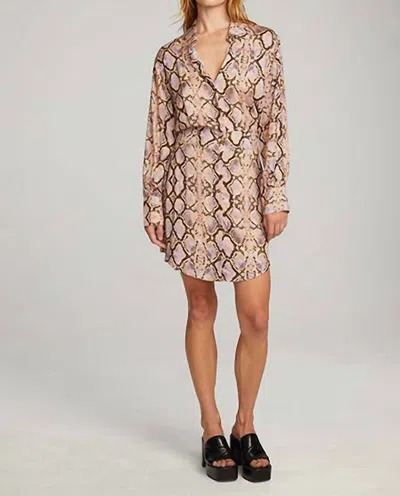 The kind of easy and flattering dress you'll be reaching for all season long.Meet the Paxton Dress by Chaser, a striking mini dress in a Python animal pattern that captures attention. Designed with long sleeves and a classic collar neckline, this dress is made from silky rayon, offering a smooth and luxurious feel. Its refined button closure enhances the shirt dress silhouette for a polished look. Whether for day or night, this dress is an effortless choice for a chic, put-together ensemble.
