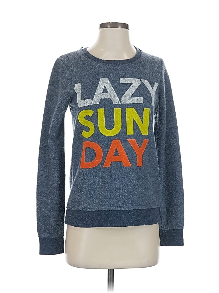 Chaser Sweatshirt, Size: X-Small. Item Details: Blue, Crew Neck, Long Sleeve, Women's Tops, Polyester/Rayon