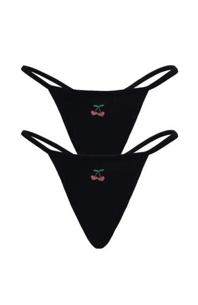 CHEEKY CHERRY 2-pack Leakproof Everyday Liner Ultra Smooth String Thong In Onyx/onyx