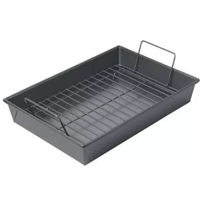 Designed with health-conscious eaters in mind, the nonstick roasting rack fits perfectly in the roasting pan, keeping foods elevated from oils and grease while cooking. The nonstick roasting pan is made from heavy-weight carbon steel, which promotes excellent heat conduction and allows for even baking and better results overall. Perfect for large roasts and holiday meals, the pan holds up to 25 pounds of meat and measures 18x13.3.4 inches--so there's plenty of room for roasting veggies too.# Pieces In Set: 2Features: Oven SafeManufacturer Warranty: Lifetime LimitedRecommended Utensil Material: NylonMaximum Temp (f): 450 Degrees FCare: Hand WashMaterial: AluminumCountry of Origin: Imported