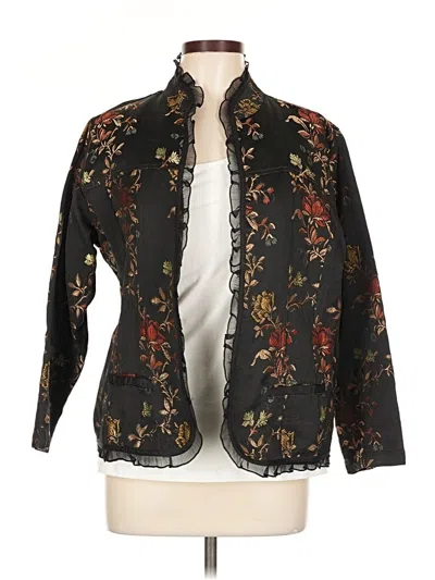 Chico's Jacket, Size: Large. Item Details: Black, Floral Pattern, Women's Jackets & Outerwear, Polyester/Rayon