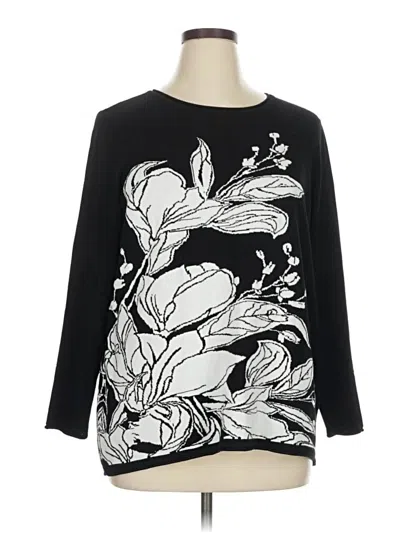 Chico's Pullover Sweater, Size: X-Large. Item Details: Black, Floral Pattern, Scoop Neck, 3/4 Sleeve, Print, Women's Tops, Rayon/Polyester