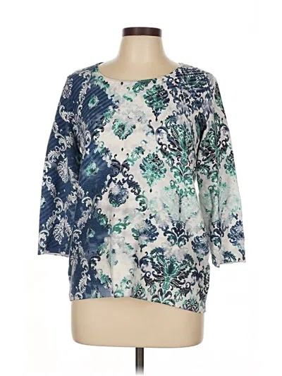 Chico's Pullover Sweater, Size: Large. Item Details: Blue, Scoop Neck, 3/4 Sleeve, Women's Tops, Rayon/Nylon