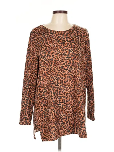 Chico's Pullover Sweater, Size: Large. Item Details: Brown, Animal Print Pattern, Scoop Neck, Long Sleeve, Women's Tops, Polyester/Rayon/Spandex