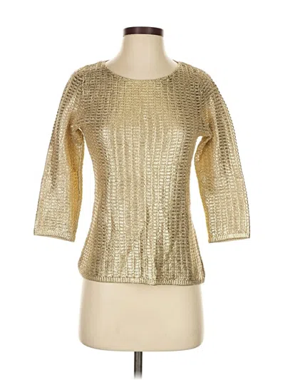 Chico's Pullover Sweater, Size: Small. Item Details: Gold, Metallic Pattern, Square Neckline, 3/4 Sleeve, Women's Tops, 100% Cotton