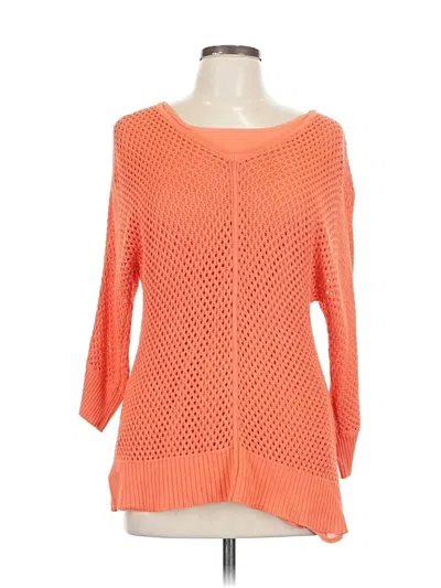 Chico's Pullover Sweater, Size: Large. Item Details: Orange, Scoop Neck, 3/4 Sleeve, Cut Outs, Women's Tops, 100% Rayon