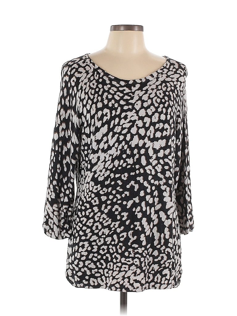 Chico's Pullover Sweater, Size: Large. Item Details: Silver, Animal Print Pattern, Scoop Neck, 3/4 Sleeve, Women's Tops, Rayon/Nylon/Cashmere