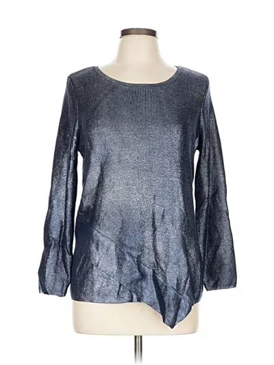 Chico's Pullover Sweater, Size: Large. Item Details: Silver, Metallic Pattern, Scoop Neck, Long Sleeve, Women's Tops, Rayon/Nylon/Polyester