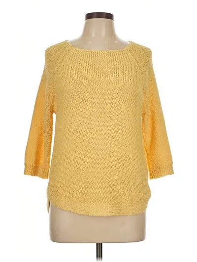 Chico's Pullover Sweater, Size: Large. Item Details: Yellow, Scoop Neck, 3/4 Sleeve, Glitter, Women's Tops, Cotton/Polyester