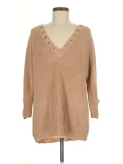 Chicwish Pullover Sweater, Size: Medium. Item Details: Tan, Plunge Neckline, 3/4 Sleeve, Studded, Women's Tops