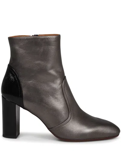 Chie Mihara Eiza ankle boots, in calfskin with laminated finish.- FW24- Pointed design - Contrasting heel in shiny leather- Heel height: 9 cm- Leather lining - Zip closure- Leather sole with non-slip rubber insert- Made in Spain- Calf leather - MPN: EIZAPLOMO PLOMO NEGRO