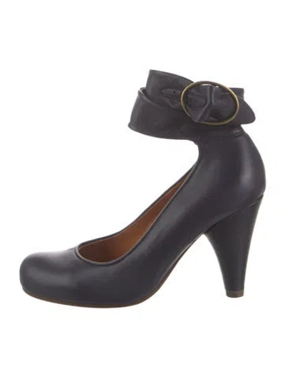 Chie Mihara Leather Pumps Black Round-Toes Wrap-Around Straps & Buckle Closure at Ankles Unfortunately, due to restrictions, this item may not be eligible for shipping in all areas. | Chie Mihara Leather Pumps in Black, Women's IT 37 | 7