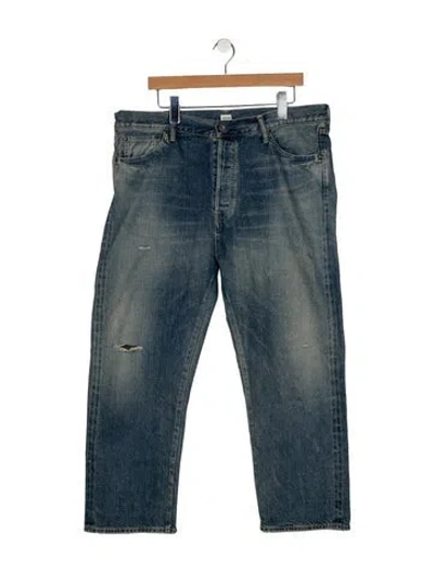Chimala Relaxed Fit Jeans Blue Medium Wash Cropped & 5 Pockets Raw-Edge & Distressed Accents Fit: Jeans by Chimala typically fit true to size. | Chimala Relaxed Fit Jeans in Blue, Men's M