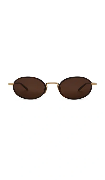 Chimi Lea Sunglasses in Royal Tortoise - Chocolate. Size all. Acetate frame and non-polarized lens. Stockholm. Lens measures approx 53mm. Bridge measures approx 25mm. Arm measures approx 132mm. 100% UV Protection. Includes cleaning cloth and hard case. CHMI-WG48. 20758. About the designer: