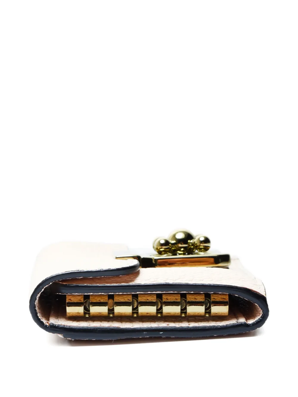 2000s ivory leather grained finish turn-lock fastening gold-tone hardware key hooks logo detail Condition: GOOD. This previously owned and used item is in good condition with minimal signs of use. This may include fading of material or plating and scratches.