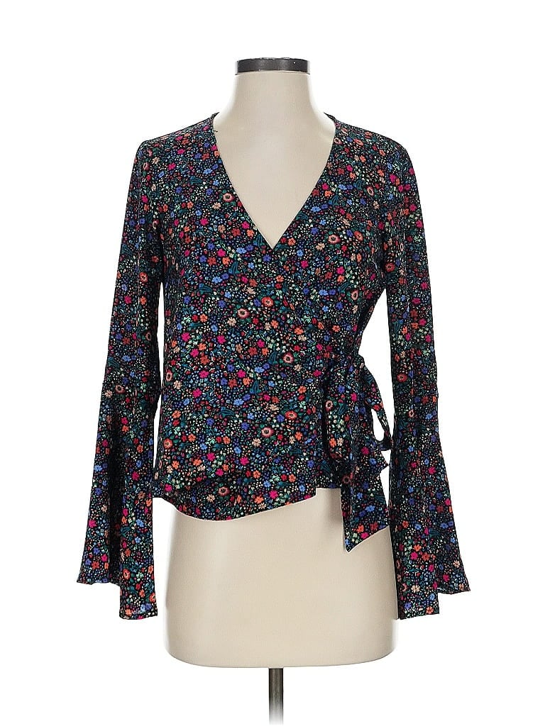 Chloe & Katie Long Sleeve Blouse, Size: X-Small. Item Details: Black, Plunge Neckline, Women's Tops, Polyester/Spandex