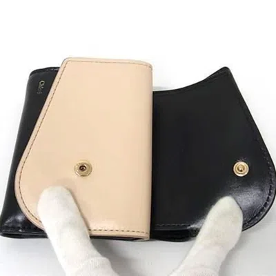 Pre-owned Beige Black Leather Wallet (tri-fold) () In Multi