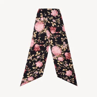 Printed wide bandeau scarf in organic silk charmeuse with a floral motif depicting peonies and leaves, inspired by the Maison's heritage. This sheer, inkjet-printed scarf is signed with a subtle Chloé logo at the tip.