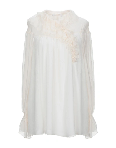 CHLOÉ Blouses. voile, ruffles, basic solid color, front closure, button closing, long sleeves, round collar, no pockets, fully lined, large sized. 100% Silk