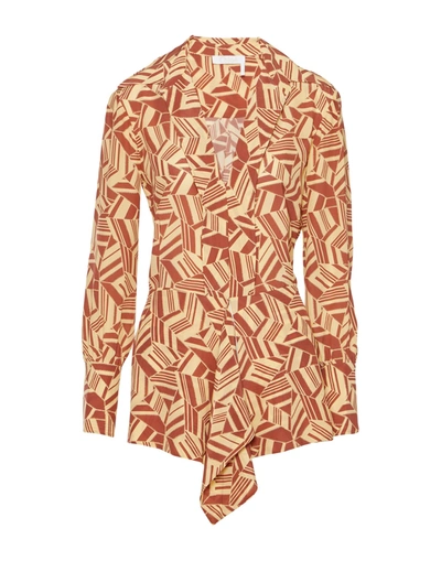 CHLOÉ Blouses. crepe, no appliqués, two-tone, front closure, hook-and-eye closure, long sleeves, v-neck, no pockets, unlined, large sized. 100% Silk
