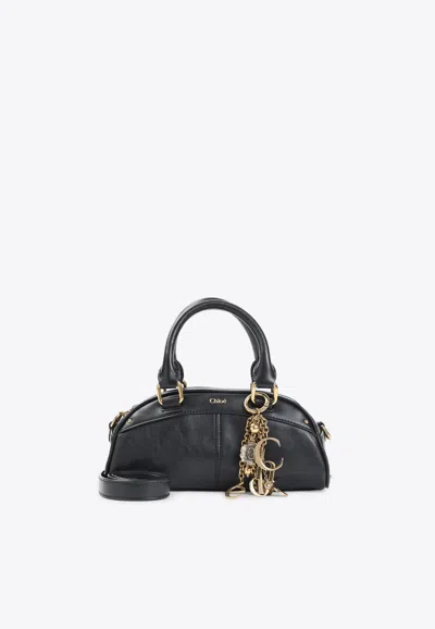 CHLOÉ Bowling Leather Top Handle Bag With Charms In Black