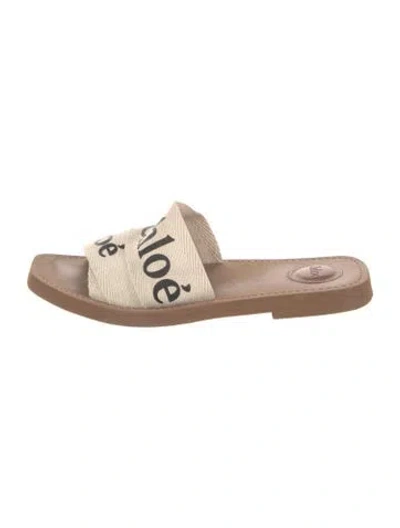 Chloé Canvas Slides White Printed Fit: This style typically runs a half size small. | Chloé Canvas Printed Slides in White, Women's IT 39 | 9