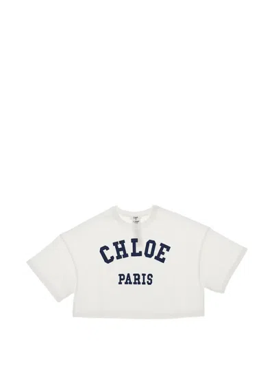 CHLOÉ Kids' Cropped T-shirt In White