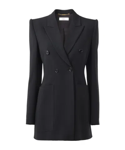 CHLOÉ Double-breasted Wool Tailored Jacket With Patch Pockets In Black