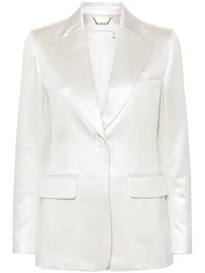 Silver-tone Made from organic silk lamé Notched lapels Shoulder pads Long sleeves Button front fastening Welt chest pocket Two flap front pockets American rear vent Straight hem