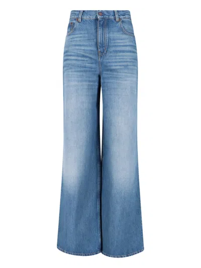 Chloé flared jeans in blue cotton denim with high waist, button and zip closure, belt loops, five pockets, leather logo patch at the back, flared leg. - Trims: 100% leather