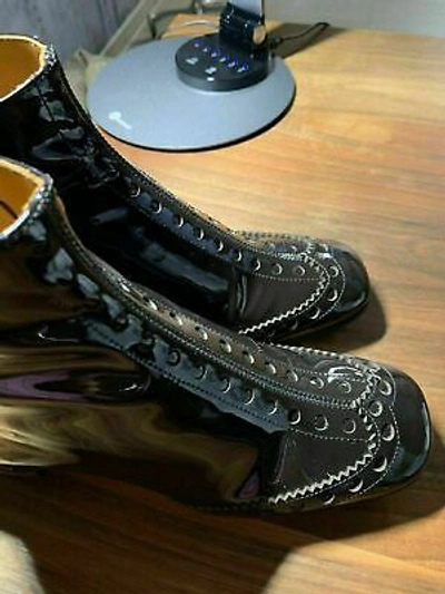 No design template No design template No design template CHLOE Perry ankle boots in patent leather with brogue detail SIZE : EU-IT 38.5 / FR 39.5 / UK 5.5 / US 8.5 In original packaging with all the accessories. Made in Italy / Our regular shop price : 870 EUR ENGLISH : The new Perry ankle boot contrasts masculine and feminine details for a sophisticated yet whimsical daywear option with unmistakable Chloé attitude. The softly squared toe and chunky heel create a cool, flattering silhouette while exaggerated broguing adorns the boot with graphic lines.The patent finish amps up the bold allure while the distinctive bi-material heel is imbued with modern charm. Charged with blithe seventies spirit, French fashion house Chloé combines the romanticism of nostalgic femininity with the unruffled elegance of Parisian chic. Exhibiting the unmistable attitude of the brand with its androgynous broguing detail, the Perry boot is built with an almond toe, taking an ankle length and fastening to the side with a zip. The s