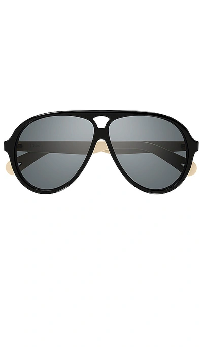 CHLOÉ Jasper Aviator In Shiny Solid Trilayer Black Blue & Ivor