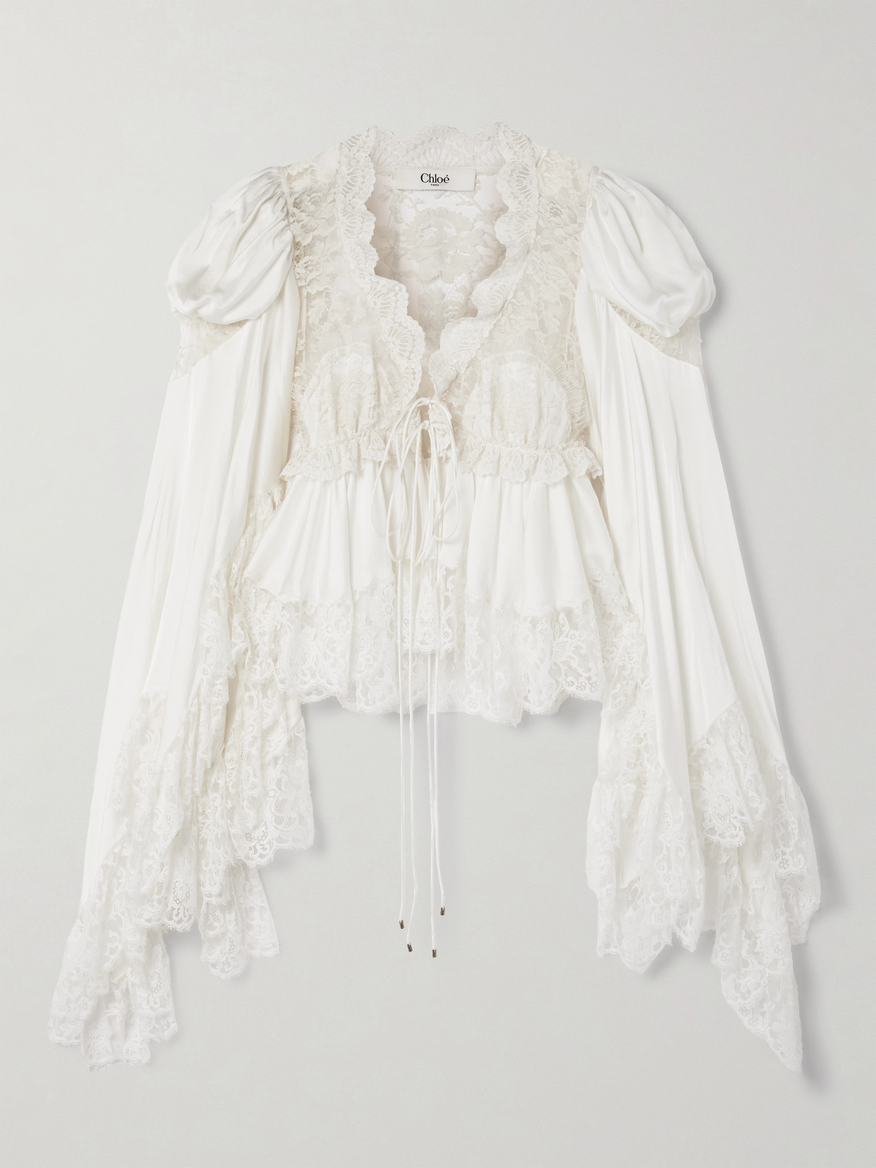 CHLOÉ Lace-paneled Silk-satin Blouse In White