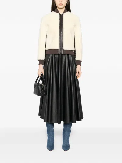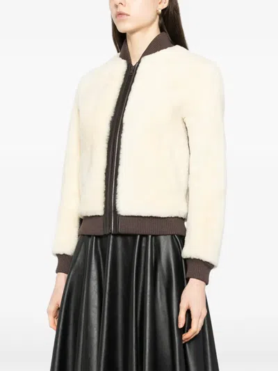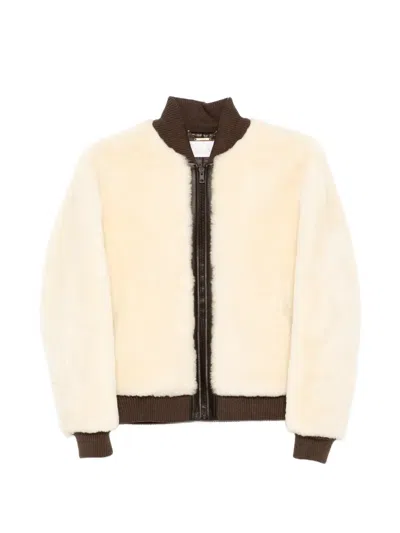 Pre-owned Leather Bomber Jacket In Neutral