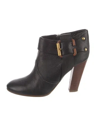 Chloé Leather Ankle Boots Black Semi-Pointed Toes Wrap-Around Straps & Exposed Zip Closure at Sides Fit: This style typically runs a half size small. Unfortunately, due to restrictions, this item may not be eligible for shipping in all areas. | Chloé Leather Boots in Black, Women's IT 38 | 8