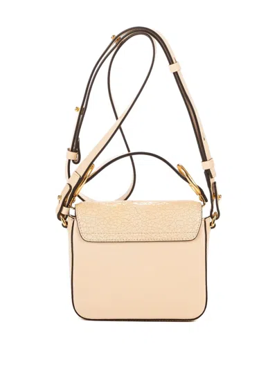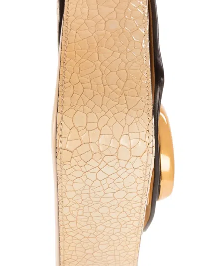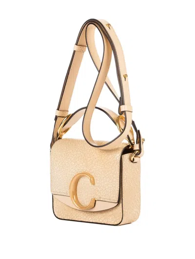 beige cracked leather gold-tone hardware shoulder strap C logo detail