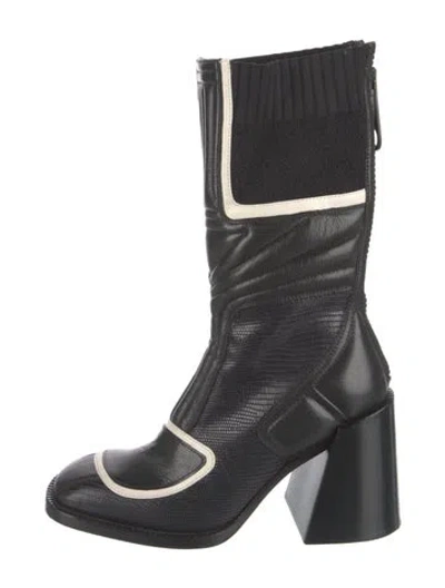 Chloé Leather Mid-Calf Sock Boots Black Square-Toes Zip Closures at Shafts Includes Box & Dust Bag Fit: This style typically runs a half size small. Unfortunately, due to restrictions, this item may not be eligible for shipping in all areas. | Chloé Leather Sock Boots in Black, Women's IT 39.5 | 9.5