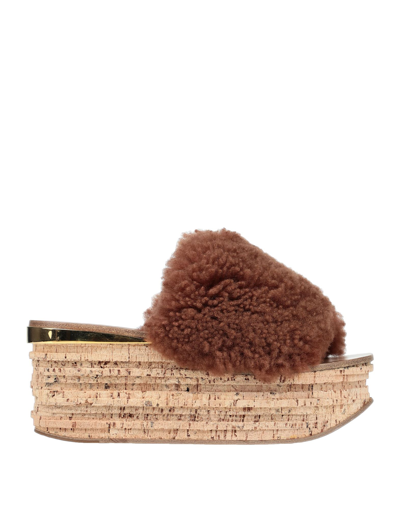 CHLOÉ Mules & Clogs. metal applications, solid color, round toeline, wedge heel, cork wedge, leather lining, leather sole, contains non-textile parts of animal origin. Shearling