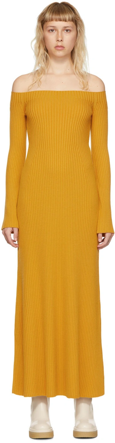 CHLOÉ Off-the-shoulder Ribbed Wool And Cashmere-blend Maxi Dress In Sunlight Yellow